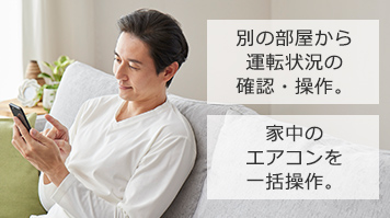 スマートフォンに専用アプリをインストールすれば、いつでもどこでもエアコンの操作や運転状態の確認ができます。