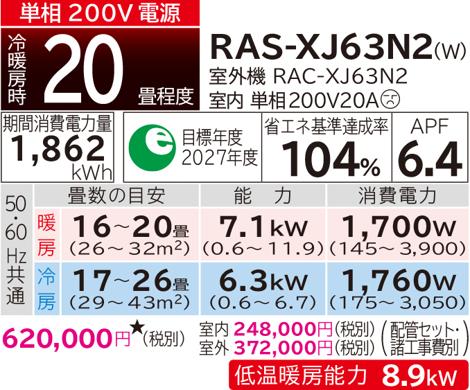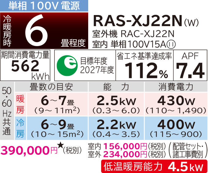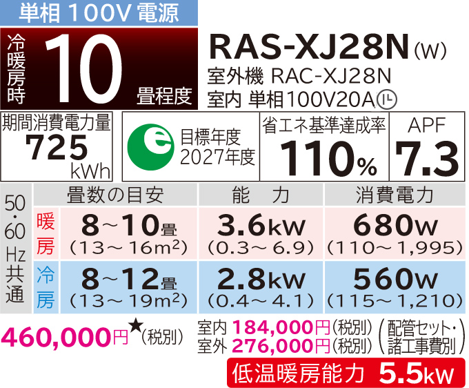 | 型式 | RAS-XJ22N・XJ25N・XJ28N・XJ36N・XJ36N2・XJ40N2・XJ56N2 | RAS-XJ63N2・XJ71N2・XJ80N2・XJ90N2 | |