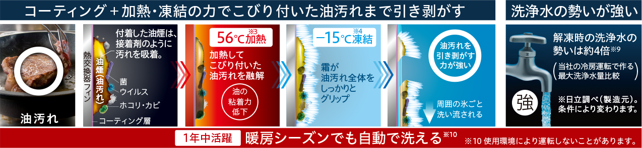※1 2025年3月1日時点で販売されている国内家庭用エアコンにおいて。熱交換器を自動で凍結させ洗浄する技術。