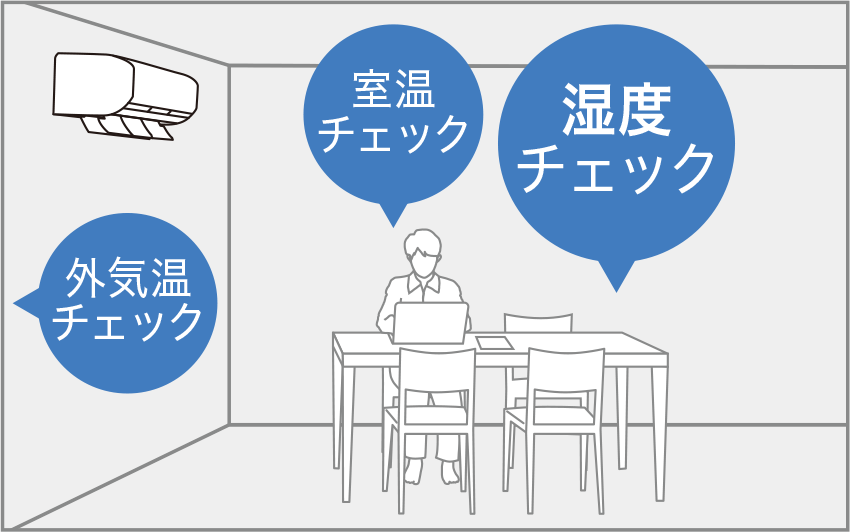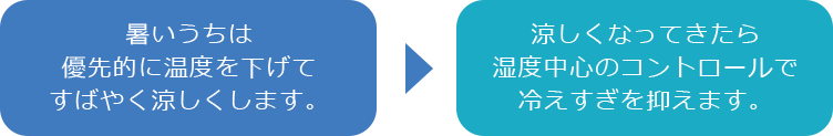 室温と湿度を自動でコントロールして、冷やしすぎず、さわやかな涼しさをお届けします。