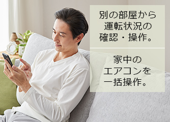 スマートフォンに専用アプリをインストールすれば、いつでもどこでもエアコンの操作や運転状態の確認ができます。