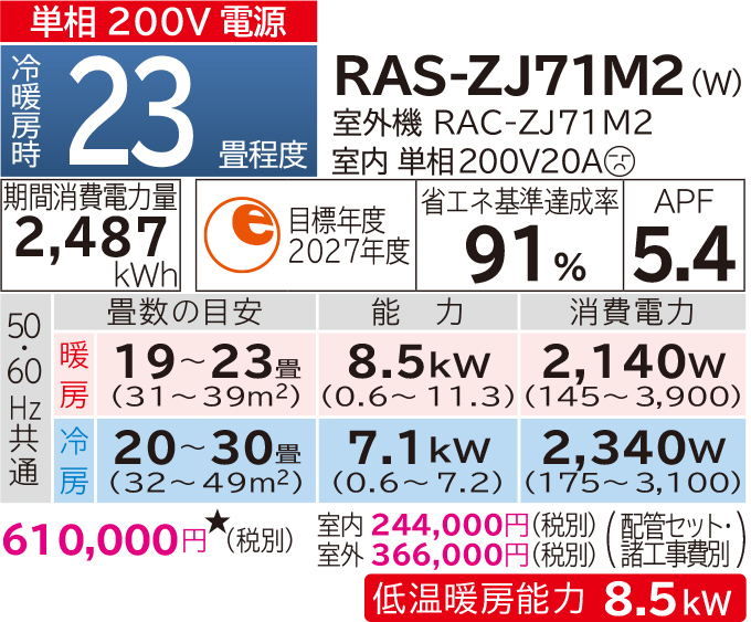 | 型式 | RAS-ZJ22M・ZJ25M・ZJ28M・ZJ36M・ZJ40M2・ZJ56M2 | RAS-ZJ63M2・ZJ71M2 | |