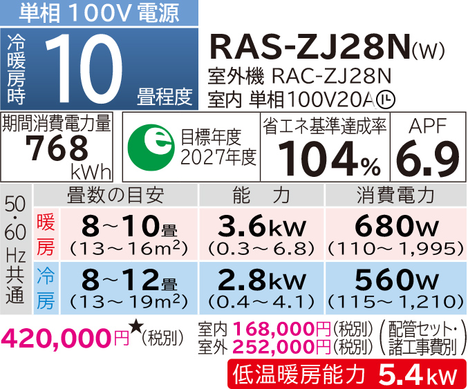 | 型式 | RAS-ZJ22N・ZJ25N・ZJ28N・ZJ36N・ZJ40N2・ZJ56N2 | RAS-ZJ63N2・ZJ71N2 | |