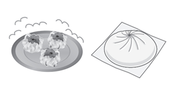 オートメニューのスチームあたため、中華まんあたためを選択するだけで、ふっくらあたためます。