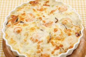 レンジとオーブンを使った加熱方法で、市販の冷凍食品をパリッと調理します。家庭で冷凍した食品も調理できます。レンジにもオーブンにも使えるテーブルプレートで調理します。