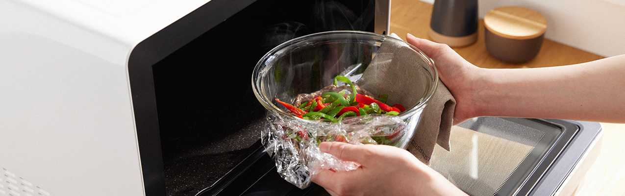 レンジ加熱で食材の中の温度を上げることで、調理時間が短くなり、ジューシーな仕上がりに。