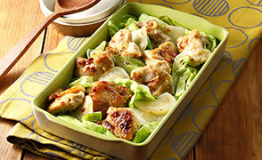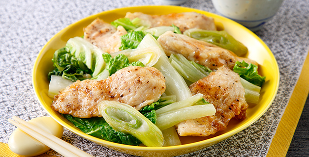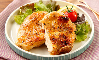 レンジ加熱で食材の中からすばやく温度を上げることで、調理時間が短くなり、鶏肉がジューシーな仕上がりに。