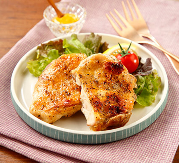 鶏・魚のメニューを選択したら、基本の味付けは塩・こしょうでOK。付け合わせも一緒に火加減オートでおいしく調理します。事前に下味をつけるレシピやさまざまなソースによるアレンジなど、お好みの味が楽しめます。