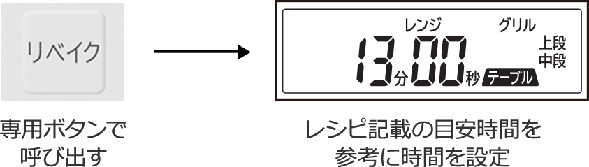 専用ボタンで簡単呼び出し。目安時間を参考に手動で設定できるから、自分好みの仕上がりに。