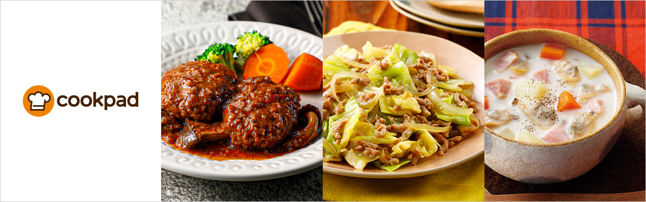 *1 元レシピはレシピサービス「クックパッド」のホームページをご参照ください。搭載レシピ名および作家名は元レシピに掲載の名称と異なる場合があります。