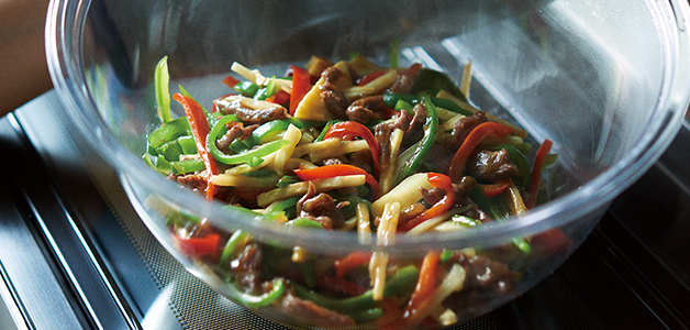 耐熱プラスチックボウルでも、耐熱ガラスボウルでも、簡単に調理ができます。大火力ですばやく調理するから野菜がシャキシャキ。もっと野菜を食卓に。