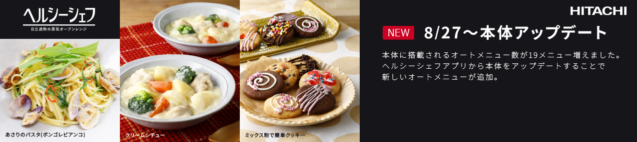 レシピサイトや食品メーカーの人気メニューもオートで手軽に。やわらかメニューや冷凍からラクラクメニューなど多彩なレパートリーがそろっています。