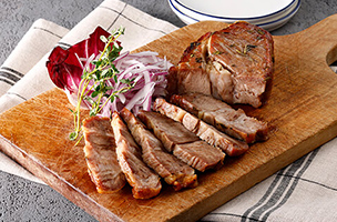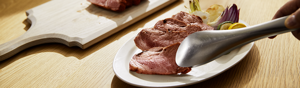 液晶画面からお肉の種類や形状を選択。分量にあわせて火加減がオートで調節されるため、焼き上がりもおまかせで。付け合わせの野菜も一緒に調理可能です。基本の味付けは塩・こしょうでOK。事前に下味をつけて焼き上げたり、ソースを作ってアレンジしたりなど、お好みの味をお楽しみいただけます。