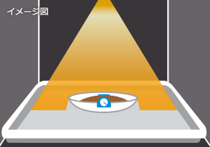 食品の重さと加熱前の表面温度をはかり*4、さらに温度変化から食品と容器のバランスを推測します。あたためる分量を見分け、適温*1にあたためます。
