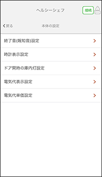 調理終了音や電気代表示の設定などができます。