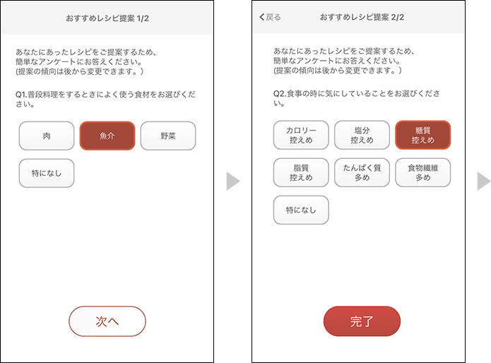 食材や気にしている栄養成分を元に、
