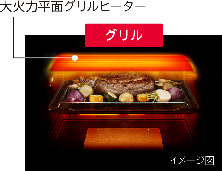 輻射熱と遠赤外線効果で加熱を早めて高温を維持するから、包み込むように焼ける。