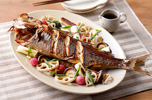 表⾯はこんがり焼き上げて、⾁料理はジューシーに、⿂料理はふっくらと。⾷材を並べて、あとはおまかせ。