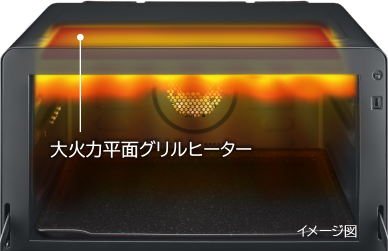 平面の大火力ヒーターが上から表面に焼き色をつけます。しかもヒーターが露出していないので、お手入れが簡単です。