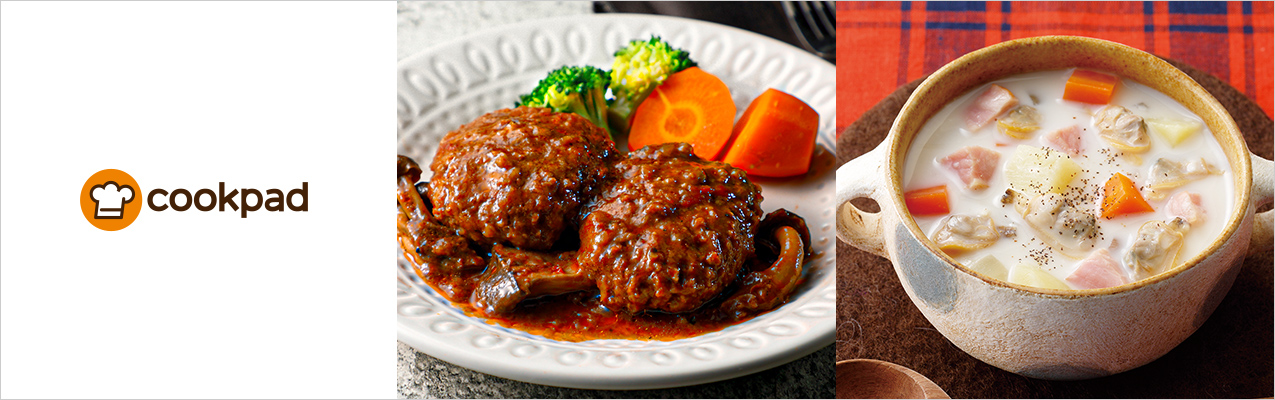 *1 元レシピはレシピサービス「クックパッド」および各食品メーカーのホームページをご参照ください。搭載レシピ名および作家名は元レシピに掲載の名称と異なる場合があります。