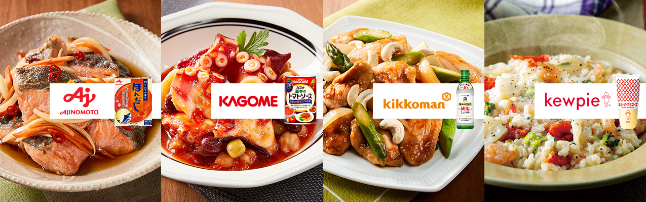 おいしさにこだわる食品メーカーとコラボ。おうちの調味料を使って、おいしいレシピをオートで簡単に作れます。