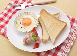 主菜1品、副菜2品を一度にまとめて作るセットメニュー[朝食セット]で手間を省きます。3品を同時に作るから、食卓で主菜と副菜をあわせて、出来たてが食べられます*2。