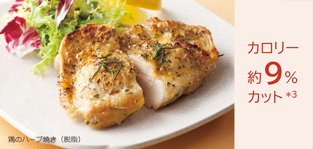 *3 当社調べ。オートメニュー「鶏のハーブ焼き(脱脂)(4人分)」約851kcal:オートメニュー「鶏のハーブ焼き(熱風旨み焼き)(4人分)」約934kcalに対して約9%のカロリーをカット。オートメニュー「塩ざけ(減塩)(約80g)」の減塩率5.5%:オートメニュー「塩ざけ(熱風旨み焼き)(約80g)」の減塩率0.38%に対して、約5%ポイントアップします。減塩率は調理前後の塩分量で算出しています。