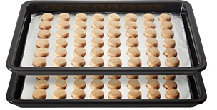 オーブン調理時は、上下の角皿に熱風が沿うような流れを作り、全体を包み込むようにおいしく焼き上げます。