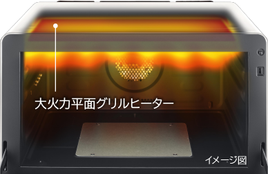 平面の大火力ヒーターが上から表面に焼き色をつけます。しかもヒーターが露出していないので、お手入れが簡単です。