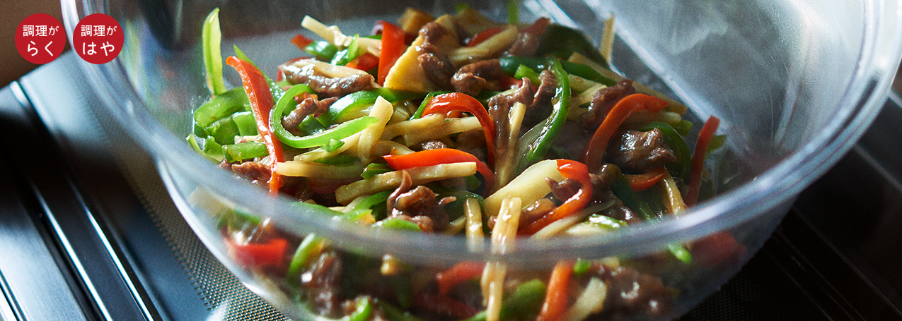※当社調べ。2019年度商品MRO-W10XのチンジャオロウスーのピーマンのビタミンC残存率86.2%に対して90.9%