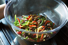 1.スチームが食品にあたるようにラップや容器のふたを外す