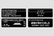 ●おかず●ごはん●2品同時あたため●飲み物・牛乳●酒かん●スチーム●中華まん●パン●総菜パン●揚げ物●温度設定