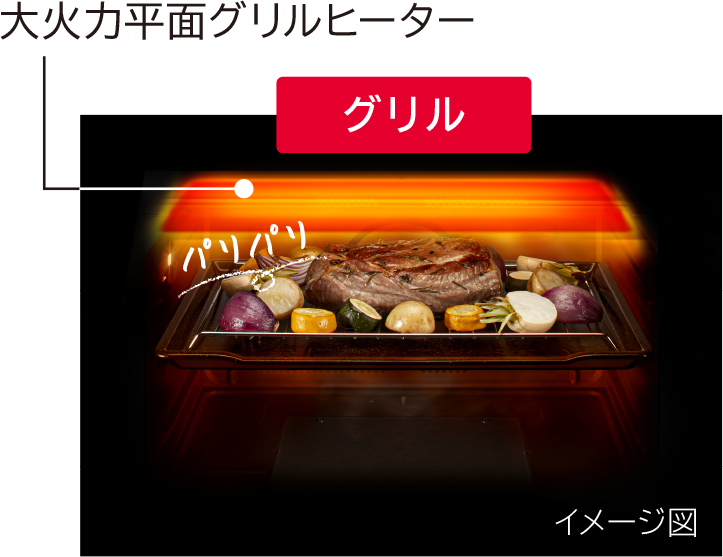 輻射熱と遠赤外線効果で加熱を早めて高温を維持するから、包み込むように焼ける。