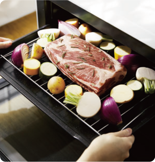 全体の調理時間が短くなり、食材から出る水分量を抑えてジューシー・ふっくらな仕上がりに。
