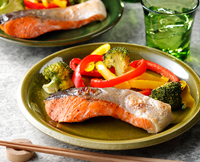 液晶画面から肉・魚・野菜の種類や、形状、保存状態を選択。付け合わせも一緒に、食材の分量にあわせて火加減をオートで調節して焼き上げます。基本の味付けは塩・こしょうでOK。事前に下味をつけるレシピやソースを作ったアレンジなど、お好みの味が楽しめます。