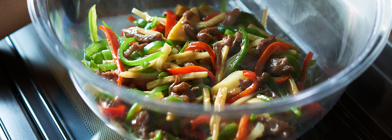 ※当社調べ。2019年度商品MRO-W10XのチンジャオロウスーのピーマンのビタミンC残存率86.2%に対して90.9%