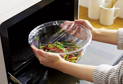 耐熱プラスチックボウルでも、耐熱ガラスボウルでも調理可能。ボウルの種類をオートで見分けるから容器の設定が不要です。