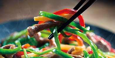 大火力ですばやく加熱するから、野菜から出る水分量をおさえてシャキシャキ食感に。水分の流出による栄養素の減少も抑えます。