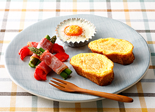 主菜1品、副菜2品を一度にまとめて作るセットメニュー[朝食セット]で手間を省きます。3品を同時に作るから、食卓で主菜と副菜をあわせて、出来たてが食べられます*1。