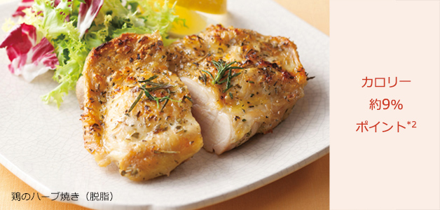 *2 当社調べ。オートメニュー「鶏のハーブ焼き(脱脂)(4人分)」約851kcal:オートメニュー「鶏のハーブ焼き(熱風旨み焼き)(4人分)」約934kcalに対して約9%のカロリーをカット。オートメニュー「塩ざけ(減塩)(約80g)」の減塩率5.5%:オートメニュー「塩ざけ(熱風旨み焼き)(約80g)」の減塩率0.38%に対して、約5%ポイントアップします。減塩率は調理前後の塩分量で算出しています。