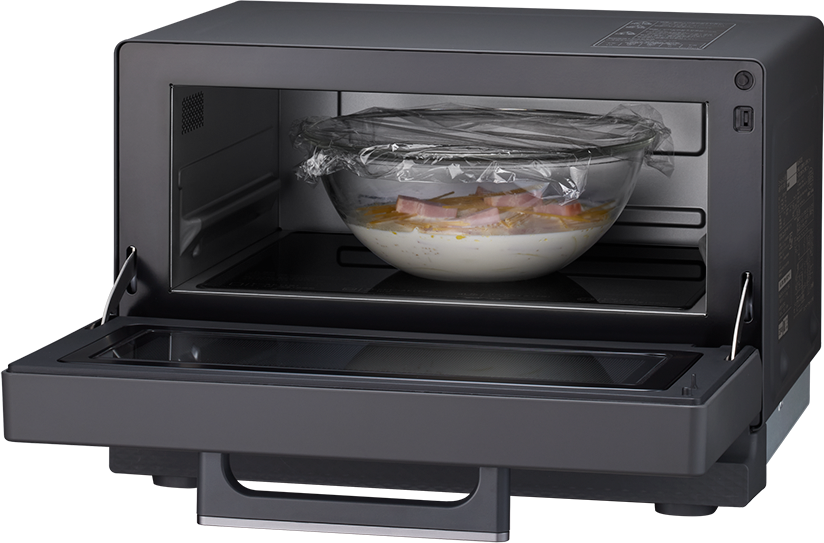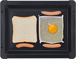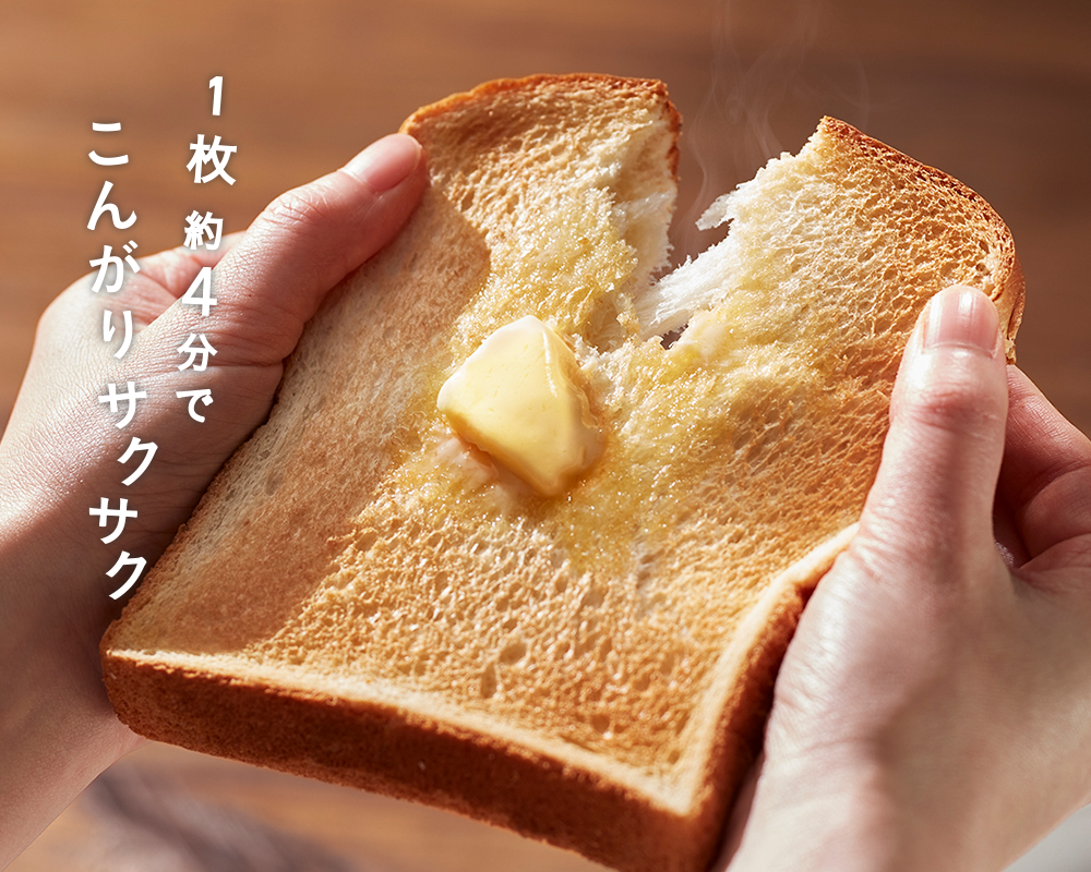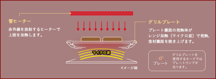 レンジ加熱(マイクロ波)で発熱する「グリルプレート」で食材裏面を加熱。適切な加熱制御で食パンの両面をサクッと焼き上げます。