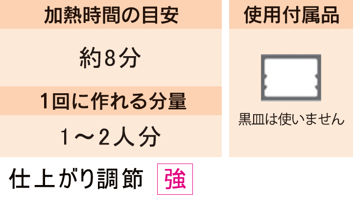 2. をテーブルプレートの中央に置き10分メニュー13 10分いため物仕上 がり調節で加熱し、かき混ぜる。
