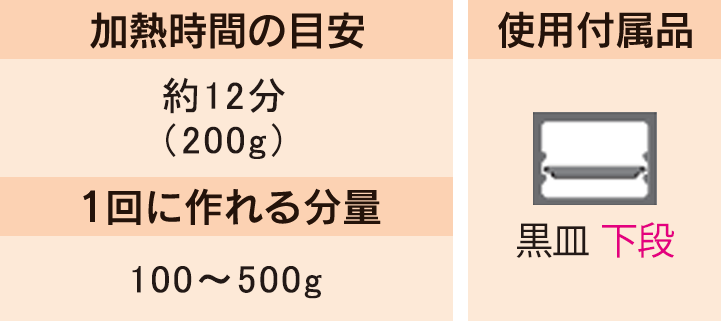 100g以上にするか、下段に黒皿を入れオーブン予熱無180℃で様子を見ながら加熱します。