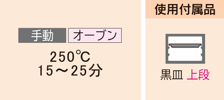 4. 黒皿にを並べ、上段に入れオーブン予熱無250℃15~25分で加熱する。