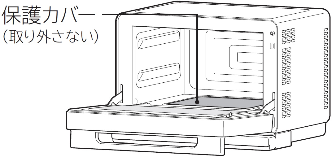 - 空焼き( 脱臭 )の加熱中や終了後しばらくは、本体(ドア、キャビネット、加熱室とその周辺)に触れない