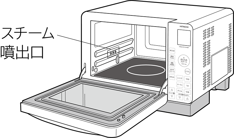 スチームを発生させ、加熱室内の汚れをふき取りやすくします。