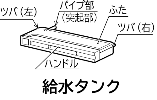 - 取扱説明書に記載の「給水タンクの使いかた」を参照してください。