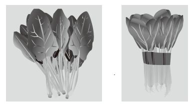 - 葉菜、果菜、花菜の根元の太い物には、十文字の切り目を入れ、房になっている物は小房に分けます。
