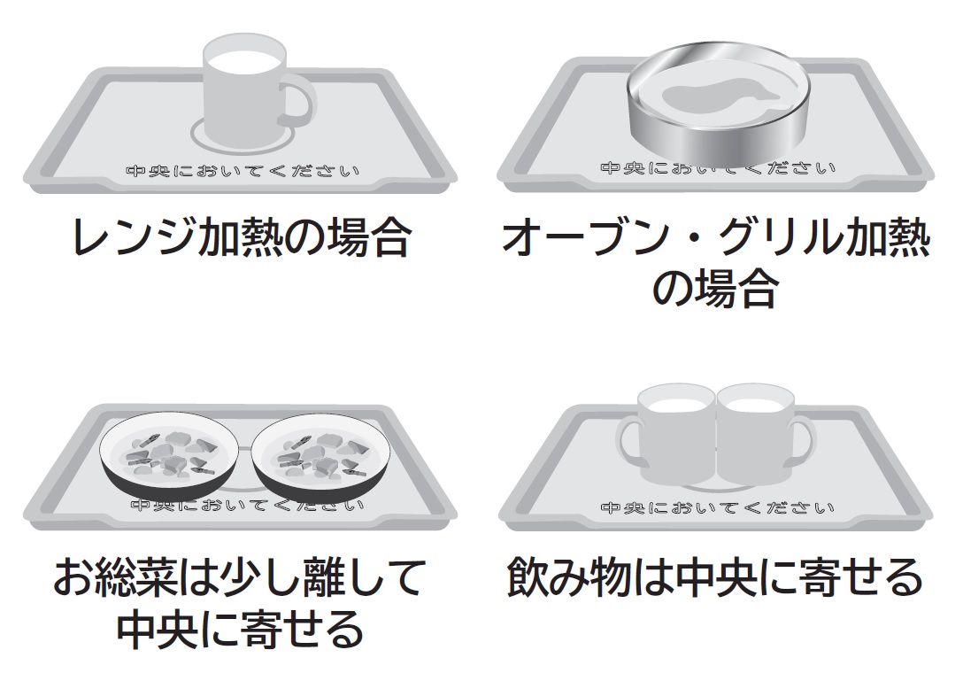 - 冷凍ごはんの解凍あたためはテーブルプレートの中央に直接置きます。