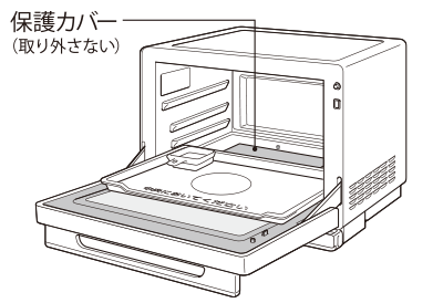 - ●加熱室内に食品くずや煮汁などが付いたまま使い続けると壁面に汚れがこびりついて落ちなくなります。こまめにお手入れを行ってください。